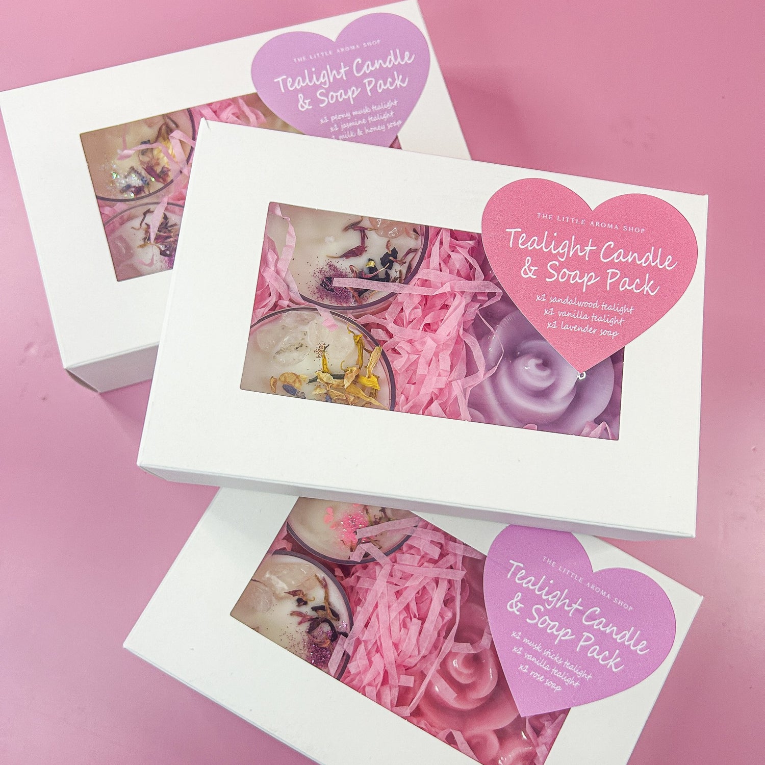 Choose from 3 different Tealight Candle & Soap Packs!
